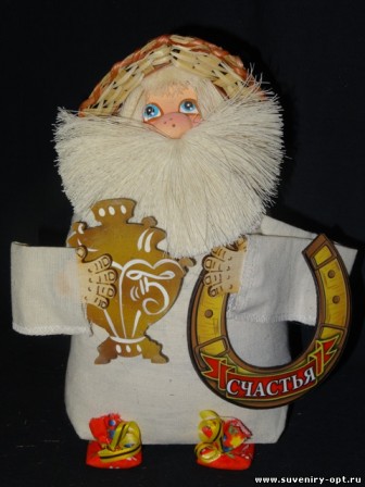 Сувенир-домовой "Андрейка" в шляпе с самоваром и подковой.