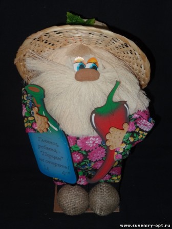 Сувенир-копилка "Евгеша" в шляпе с перцем и бутылкой.